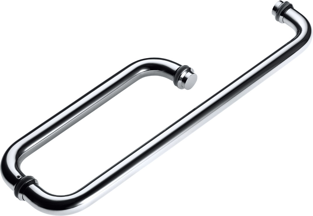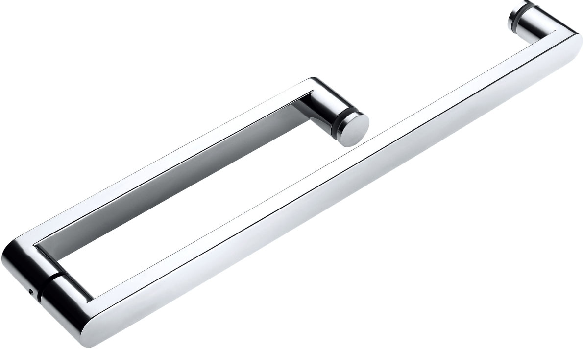 L shape of shower door handles. Onde bar is installed horizontally, and the other bar is installed vertically. The horizontal part can be also used as as towel bar which is very convenient and prictical for using.